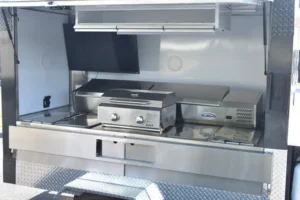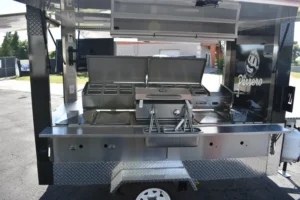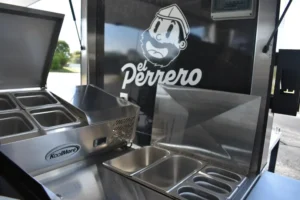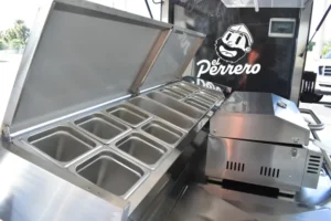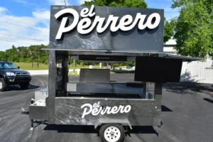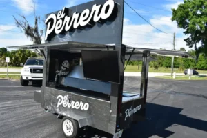 This 8ft x 4ft hot dog cart is designed for efficient street food service with its compact yet functional layout. Featuring a stainless steel construction and equipped with essential amenities such as a built-in sink and ample storage, this cart ensures optimal hygiene and convenience. Its sleek and attractive exterior design enhances customer appeal, making it an excellent choice for mobile food vending at events and busy locations.